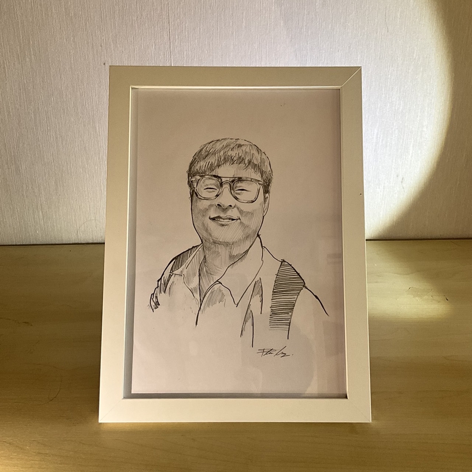 วาดรูปเหมือนพร้อมใส่กรอบ ขนาดกระดาษ A4 เทคนิค ดินสอ 2B ปากกาดำ Pigma งานวาดมือ100%(วาดตามภาพถ่าย) จัดส่งทั่วประเทศ