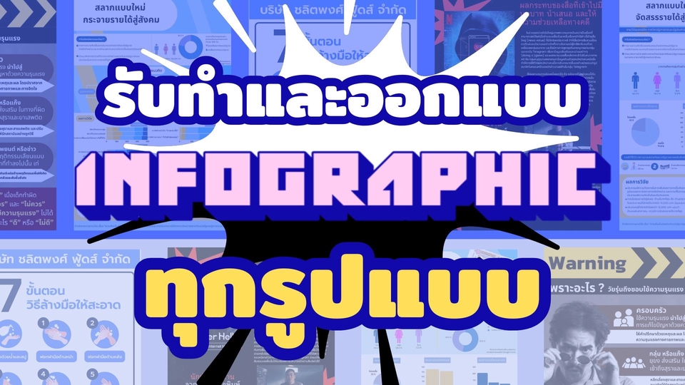 รับทำและออกแบบ Infographic ทุกรูปแบบ ขั้นตอนการทำงาน 1) รับบรีฟจากลูกค้า พูดคุยถึงธีมของงาน 2) เมื่อส่งมอบงานให้ลูกค้า สามารถแก้ไขงานได้ 3 ครั้ง ต่อ 1 แพ็คเกจ 3) เมื่องานเสร็จสิ้นไฟล์งานที่ลูกค้าจะได้รับ .JPG, .PNG หรือ .PDF 4) ระยะเวลาทำงานขึ้นอยู่กับความยากง่ายของงาน จะเริ่มนับตั้งแต่วันที่ระบบอนุมัติ 2-3 วัน *ข้อมูลทั้งหมด หรือข้อความที่จะสื่อสาร ลูกค้าจะต้องเตรียมมาให้ตั้งแต่ขั้นตอนที่ 1) - Infographic 1 ชิ้น ราคาเริ่มต้นที่ 1000 บาท จัดส่งไฟล์ .JPG, .PNG หรือ .PDF - ไฟล์ต้นฉบับ .ai หรือ Share Canva สิทธิ์เข้าถึงต้นฉบับ +300 บาท (ลูกค้าแจ้งก่อนทำการบรีฟ หากต้องการเข้าถึงไฟล์ต้นฉบับ ต้องการเข้าถึงไฟล์ .ai หรือ สิทธิ์เข้าถึงต้นฉบับ Canva)