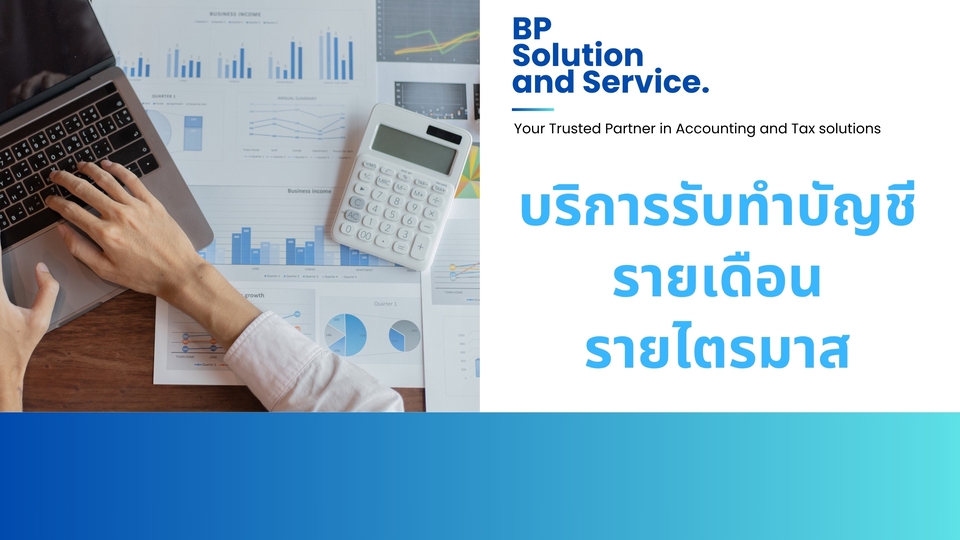 สวัสดีค่ะ BP Solution and service ของเราพร้อมให้บริการบัญชีและภาษีครบวงจร โดยผู้สอบบัญชี ที่มีประสบการณ์จาก Big4 รวมถึงมีประสบการณ์ด้านการวิเคราะห์งบการเงิน อีกทั้งสามารถออกแบบ presentation เพื่อเสนองานลูกค้าได้อีกด้วยค่ะ เราตั้งใจทำงานอย่างมืออาชีพ พร้อมทำงานให้ตรงต่อความต้องการของลูกค้าค่ะ :)