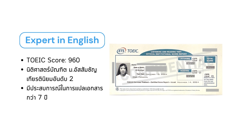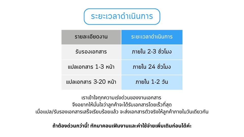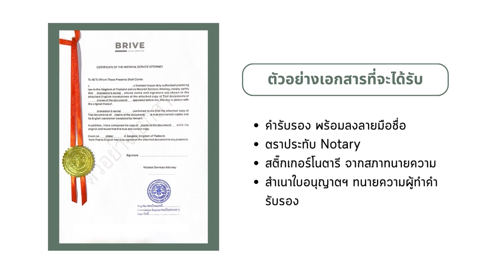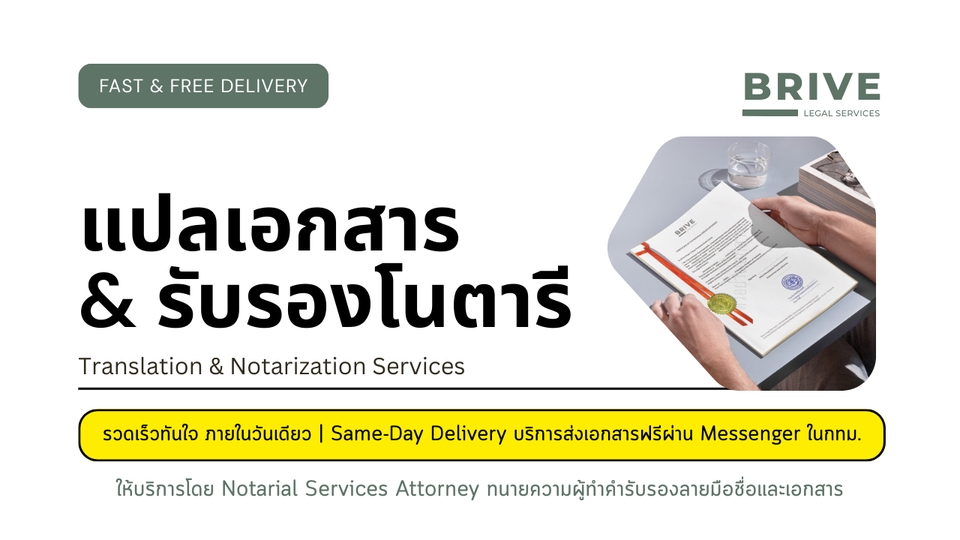 บริการแปลเอกสารทุกชนิด พร้อมรับรองคำแปล/โนตารี โดยทนายความผู้ได้รับอนุญาตจากสภาทนายฯ - หนังสือรับรองบริษัท บอจ.5 บอจ.3 - งบการเงิน - Bank Statement - บิลค่าน้ำ-ไฟ เพื่อการรับรองที่อยู่ - สัญญาต่าง ๆ • ค่าแปลเอกสารทั่วไป หน้าละ 300 บาท (เช่น หนังสือรับรองบริษัท งบการเงิน บัตรประชาชน passport) • ค่าแปลเอกสารทางกฎหมาย หน้าละ 500 บาท (เช่น สัญญาต่าง ๆ หรือเอกสารที่มีความซับซ้อน) • ค่ารับรองโนตารี ฉบับละ 1,000 บาท สามารถทักมาสอบถามรายละเอียด ขอคำปรึกษาได้ฟรี ยินดีตอบทุกคำถามมาก ๆ ค่ะ 🥰 ติดปัญหา/มีข้อจำกัดอะไร แจ้งได้เลย เรามาหาวิธีแก้ไขให้ถูกต้องไปด้วยกันค่ะ Same-Day Delivery รับเอกสารคืนภายในวันเดียวกัน *มีบริการแมสเซนเจอร์รับ-ส่งเอกสารฟรี ในเขตกรุงเทพฯ* ฟรีส่งเอกสารคืนทาง EMS สำหรับต่างจังหวัด ขั้นตอนการทำงาน 1. ลูกค้าแจ้งรายละเอียดเอกสารที่ต้องการให้ทำการรับรอง 2. สรุปรายละเอียดและค่าใช้จ่าย 3. ลูกค้าส่งเอกสารที่ต้องการให้ทำการรับรองให้ทนาย 4. ดำเนินการรับรองลายมือชื่อ/เอกสาร และส่งเอกสารคืนให้แก่ลูกค้าภายใน 2-3 ชม. ให้บริการได้ทุกวัน 24/7 ดึกแค่ไหนก็ส่งข้อความมาไว้ได้นะคะ ไม่ต้องเกรงใจ 💕 ชอบงานด่วน รักงานเร่ง บริการนอกสถานที่ได้ มีบริการยื่นรับรองเอกสารที่กรมการกงสุล กระทรวงต่างประเทศ/ สถานทูต (มีค่าใช้จ่ายเพิ่มเติมนะคะ) - คัดเอกสารที่สำนักงานเขต 700 - รับรองเอกสาร กรมการกงสุล 1,500 - รับรองเอกสาร สถานทูต 2,500 ________________________________ Translation and Notarization Services by Notarial Services Attorney Same-Day Delivery *Free Delivery by Messenger in Bangkok (EMS for other provinces) "Don't let paperwork hold you back. Contact us to get your document notarization processed quickly and easily."