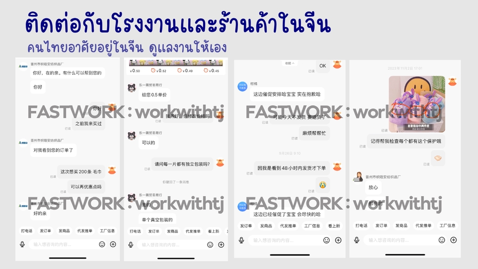 ฿4901. หาของจากแพตฟอร์มในจีน จากรูปหรือรายละเอียดที่ลูกค้าแจ้ง พร้อมเทียบราคา 2. นำเสนอข้อมูลให้ลูกค้าตัดสินใจ 3. ช่วยประสานงาน สั่งซื้อ ชำระเงิน ตลอดจนจัดส่งสินค้าจนถึงมือลูกค้า *ราคาค่าบริการ ไม่รวมค่าสินค้าและจัดส่ง (คิดตามจริง)* สินค้ามีปัญหาระหว่างจัดส่ง/ตัวสินค้ามีปัญหา ติดตามหลังการขายให้ฟรี