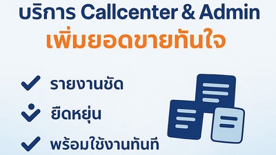 ## 📞 บริการ Callcenter & Admin ครบวงจร **📊 จัดการงานคุณภาพ:** บริหารสายโทรลูกค้าใหม่-เก่า พร้อมรายงานผลครบถ้วน **✅ รวมทุกอย่างในแพ็กเกจ:** ค่าโทรฟรี ไม่มีจ่ายเพิ่ม **📈 เพิ่มยอดขายทันใจ:** ให้บริการ 25–60 สาย/วัน ตามแพ็กเกจ **✏️ ยืดหยุ่นสูง:** แก้ไขงานฟรี 1 ครั้ง **💼 เหมาะกับทุกธุรกิจ:** ใช้งานได้ทั้งระยะสั้นและระยะยาว ### 📦 สิ่งที่คุณจะได้รับ 1. 📞 ดูแลลูกค้าใหม่–เก่า เพิ่มยอดขาย 2. 📋 รายงานผลการทำงานอย่างมืออาชีพ 3. 🛠️ งานธุรการครบ ลดภาระทีม 4. 🧩 ปรับบริการให้ตรงตามความต้องการ ⏰ **เวลาทำงาน:** 10.00–19.00 น. (พัก 12.00–13.30 น.) ### 🌟 เหมาะสำหรับ: - ธุรกิจที่ต้องการทีม Callcenter / Telesale - เจ้าของกิจการที่ต้องการ Admin มืออาชีพ - องค์กรที่มองหาทีมงานที่เชื่อถือได้ ✨ **ยกระดับธุรกิจคุณ ด้วยทีมงานคุณภาพ พร้อมลุยทุกเป้าหมาย!** ### 🔟 ขั้นตอนทำงาน 1. 💬 พูดคุยกับฟรีแลนซ์ 2. 📝 แจ้งรายละเอียดงาน 3. 📑 ขอใบเสนอราคา 4. 💰 เจรจาและตกลงเงื่อนไข 5. 📅 กำหนดเวลาเริ่ม–จบ 6. 🔒 ชำระเงินผ่านระบบ Fastwork 7. 🔄 ยืนยันการเริ่มงาน 8. 📈 ติดตามความคืบหน้าผ่านระบบ 9. 🛠️ ขอแก้ไขหรือต่อยอด 10. ✔️ ตรวจงาน อนุมัติ และให้ดาวรีวิว