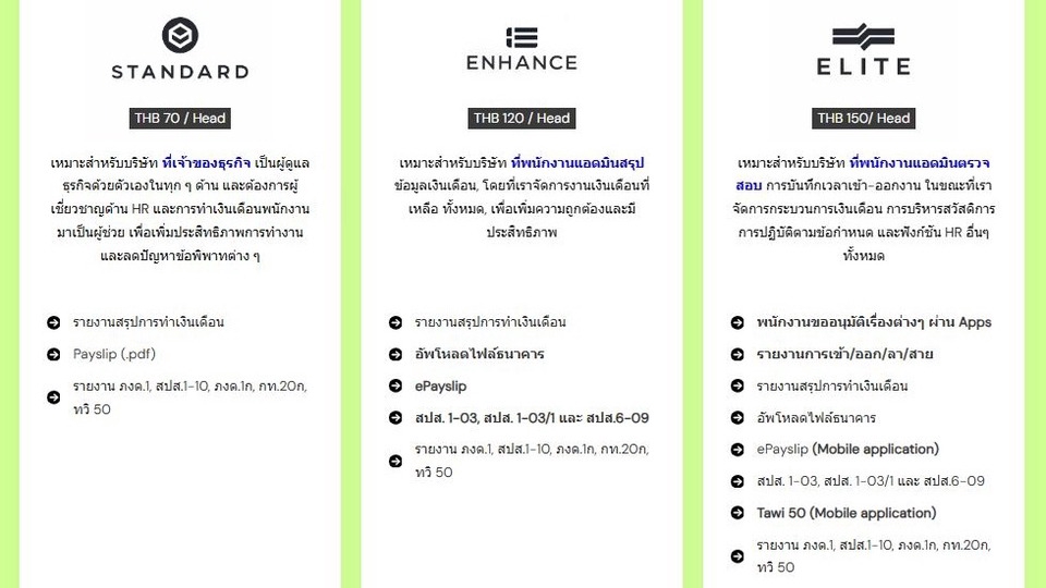 จากประสบการณ์การทำเงินเดือนมากกว่า 10 ปี เราอยากช่วย ผู้ประกอบการลดปัญหาที่ตามมากับหน่วยงานราชการต่าง ๆ เช่น กรมสรรพากร, สนง ประกันสังคมและ กรมแรงงาน เกี่ยวกับเรื่องการจ่ายเงินเดือนพนักงาน เราอยากให้ ผู้ประกอบการประหยัดเวลาการทำงาน โดยใช้ Expertise ของเราในการทำเงินเดือน เรายินดีให้คำแนะนำและให้บริการเรื่องการจ่ายเงินเดือนพนักงานรวมถึงกฎหมายแรงงานพื้นฐาน ยื่นรายงานรายเดือน และรายปี ด้วยค่าบริการที่คุณพอใจ ขั้นตอนการทำงาน 1. ลูกค้าส่งข้อมูลเงินเดือนให้ทาง CENTRIC 2. ทาง CENTRIC ส่งกลับรายงานให้ลูกค้าตรวจสอบ 3. CENTRIC ช่วยลูกค้า upload ไฟล์ธนาคารเข้าระบบ เพื่อให้ลูกค้าอนุมัติ 4. CENTRIC นำส่ง Payslips ให้ลูกค้า 5. CENTRIC นำส่งรายงาน สปส.1-10 ออนไลน์ให้ทางลูกค้าเพื่อทำจ่าย 6. CENTRIC นำส่งรายงาน ภงด.1 ออนไลน์ให้ทางลูกค้าเพื่อทำจ่าย 7. CENTRIC นำส่งเอกสารหักภาษี ณ ที่จ่าย ทวิ 50 ให้พนักงานตอนสิ้นปี 8. CENTRIC นำส่งรายงาน กท.20ก ตอนสิ้นปีกับทางสำนักงานประกันสังคม 9. CENTRIC นำส่งรายงาน ภงด.1ก ตอนสิ้นปีกับทางกรมสรรพากร