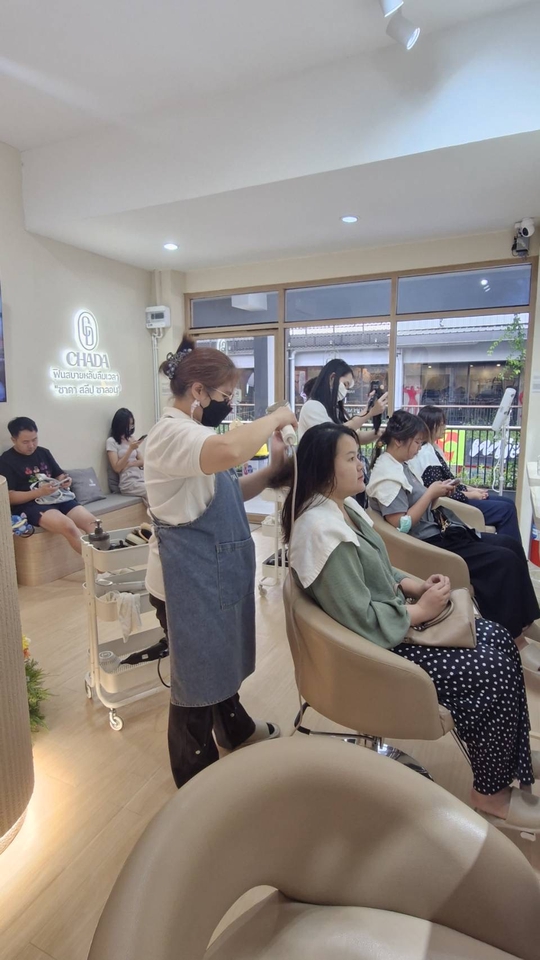คอร์ส: 𝐒𝐢𝐠𝐧𝐚𝐭𝐮𝐫𝐞 𝗜 𝟗𝟎 นาที ”สัมผัสความสบาย จัดเต็มความผ่อนคลาย ฟินสบายหลับลืมเวลา“ ──────────────────────── รายละเอียดขั้นตอน: • เสียงบำบัดผ่อนคลาย • สัมผัสผ่อนคลาย เส้นผมและหนังศีรษะ • กัวซาเส้นผมและหนังศีรษะ • หวีกระตุ้นเส้นผมและหนังศีรษะไฟฟ้า • สระผมและนวดศีรษะผ่อนคลาย รอบที่ 1 • สระผมและนวดศีรษะผ่อนคลาย รอบที่ 2 • ทรีทเม้นท์บำรุงเส้นผม (เลือกสูตรได้) • นวดผ่อนคลายศีรษะ คอ บ่า ไหล่ • อบไอน้ำสปานาโนบำรุงล้ำลึก • เป่าผมแห้งและไดร์ตรง (เลือก 1 ออฟชั่น ให้ตรงใจคุณ)👇🏻 Option A : “ดื่มด่ำไปกับความผ่อนคลาย เน้นๆทั้งศีรษะHead Only” • ไม่ทำส่วนของใบหน้า • เน้นการสปา-นวดศีรษะ • ขมับ/ต้นคอ Option B : "ความงามที่มาพร้อมกับความผ่อนคลาย" • ขัดหน้าสัมผัสผ่อนคลาย • (ผลิตภัณฑ์ออร์แกนิค 100%) • ทรีทเม้นท์ใบหน้าระบบ CRYO COLD • กัวซาผ่อนคลายใบหน้า • แสงบำบัดผิว • Face Glow (สามารถรองรับให้บริการพร้อมกันได้ 4 ท่าน) ──────────────────────── ❗️เพื่อความสะดวกโปรดสำรองคิวก่อนเข้ารับบริการ❗️ ──────────────────────── เกี่ยวกับเรา : • 𝐓𝐡𝐞 𝐎𝐫𝐢𝐠𝐢𝐧𝐚𝐥 𝐀𝐒𝐌𝐑 𝐇𝐚𝐢𝐫 𝐒𝐩𝐚 — 𝐄𝐬𝐭. 𝐀𝐮𝐠 𝟐𝟎𝟐𝟑 (ก่อตั้งเมื่อ สิงหาคม 2566) สิ่งที่ Chada ริเริ่มขึ้นเป็น “ครั้งแรก” ในไทยและในระดับนานาชาติ • กัวซาเส้นผมและหนังศีรษะ (เจ้าแรกในไทย) ใช้หินแร่ธรรมชาติกดจุดบนหนังศีรษะ เพื่อกระตุ้นการไหลเวียนเลือด ลดผมร่วง และผ่อนคลายลึกถึงรากผม • เสียงบำบัด ASMR (เจ้าแรกในไทย) เจ้าของร้านชื่นชอบการฟังเสียง ASMR ก่อนนอน จึงนำไอเดียนี้มาใช้จริงในการสระผม → ลูกค้าจะได้สัมผัสเสียงน้ำ ฟอง และการนวดในบรรยากาศ ASMR ที่หลับสบาย • นาฬิกาทรายน้ำและเครื่องแก้วเสียงน้ำ (เจ้าแรกในไทยและระดับโลก)เพิ่มความแปลกใหม่ด้วยเสียงน้ำจากเครื่องแก้วหลากสี ที่สร้างบรรยากาศชวนหลับตั้งแต่ก่อนเริ่มบริการ ได้รับการยืนยันโดยรายการ “อายุน้อยร้อยล้าน” Chada Sleep Salon ไม่เพียงเป็นที่ยอมรับจากลูกค้า แต่ยังได้รับการยืนยันความเป็น ต้นตำรับ อย่างเป็นทางการด้วยการออกรายการ อายุน้อยร้อยล้าน (100NEWS) Chada Sleep Salon ไม่ใช่แค่ร้านสระผม แต่คือ ผู้บุกเบิกที่แท้จริง ในการสร้างมาตรฐานใหม่ให้วงการ Sleep Salon ในไทย ──────────────────────── สิ่งที่ต้องการจากผู้ว่าจ้าง: • บริการนี้ให้บริการที่หน้าร้านเท่านั้น ──────────────────────── ข้อกำหนดและเงื่อนไข: • ตรวจสอบและสำรองคิวก่อนเข้ารับบริการเท่านั้น • เลื่อนนัดได้ 1 ครั้ง แจ้งล่วงหน้า 1 วัน ──────────────────────── ที่ตั้งของร้าน: ชื่อธุรกิจ: Chada Sleep Salon (ชาดา สลีป ซาลอน) หมวดหมู่: Hair Spa / Head Spa / Beauty Salon สระผมเวียดนาม | นวดศีรษะผ่อนคลาย | Head