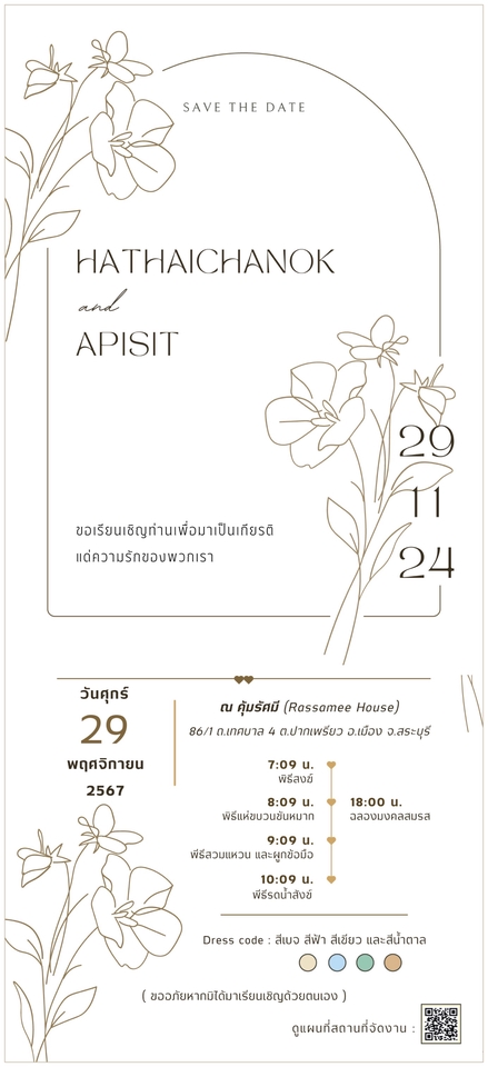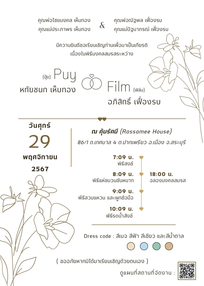 การ์ดงานแต่ง ป้ายของชำร่วย ป้ายชื่อโต๊ะ ผังโต๊ะนั่งในงาน