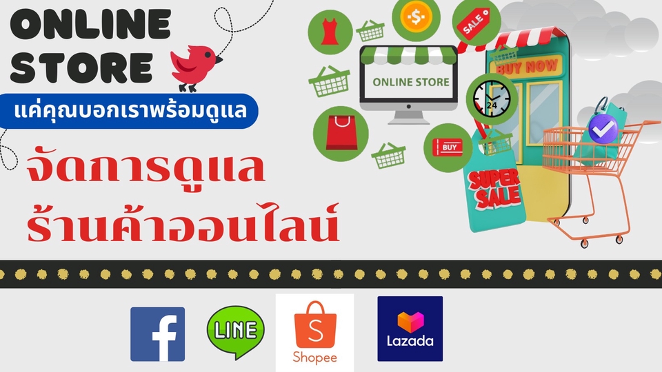 ฿900- ดูแลร้านค้าออนไลน์ - ลงสินค้าออนไลน์ - วางแผนคอนเทนต์ , Artwork สำหรับลงคอนเทนต์ (1 - 2 ชิ้นงาน) - ตอบแชทลูกค้า/สนทนาให้คำปรึกษา/ให้ข้อมูลต่างๆ - ตอบกลับคะแนนรีวิวต่างๆ - สรุปยอด จัดทำรายงาน - ติดต่อประสานงาน - จัดทำงานอื่นๆตามที่ตกลงกัน