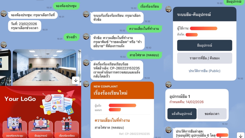 - • สร้าง Flex Message (Rich UI) สำหรับตอบกลับและเรียกดูข้อมูลทันใจ