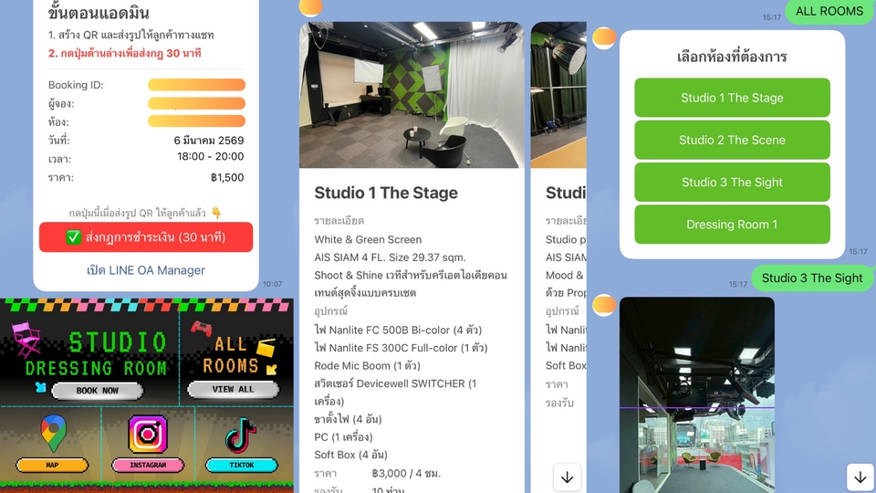 - • สร้าง Rich Menu และ Flex Message เน้นความเรียบง่าย ใช้งานสะดวก
