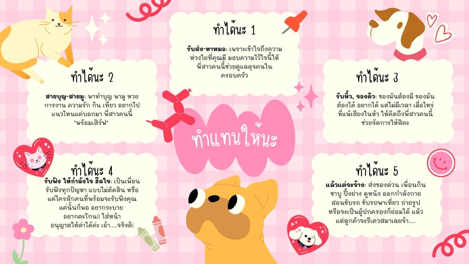 คุณแม่เลี้ยงเดี่ยวสายสตรอง ทัศนคติเชิงบวก ไหวพริบดี พร้อมแก้ไขปัญหาไม่ให้เกิดซ้ำ 🔮คอร์สเรียน * ภาษาอังกฤษ * นวดแผนไทย * การจัดการความสัมพันธ์ลูกค้า(CRM) 🔮งานอดิเรก * ทำอาหาร, หาของอร่อยๆ ทาน * ขับรถหาวัดที่สงบ เพื่อทำบุญ * ฟังเพลง, ดูซีรีย์, เดินตลาดต้นไม้ 🔮งานที่โดดเด่น * Production house * Backup Sales Manager * Customer Service Supervisor (โลจิสติกส์) * Business Development (โลจิสติกส์)