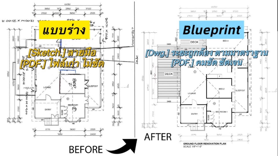 รับ แปลงไฟล์ PDF รูปภาพ หรือแบบSketchเป็น Blueprints AutoCAD(dwg.) . 2D/3D floor plans, architectural models, image and video rendering