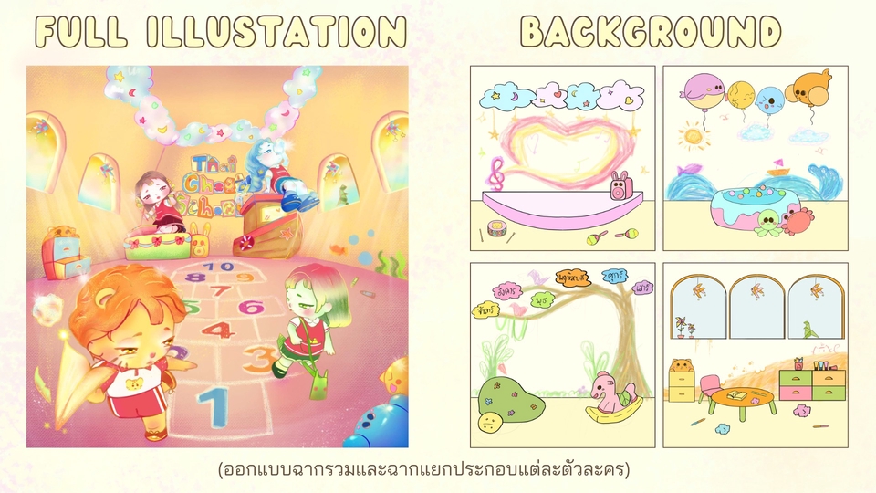 วาดภาพประกอบหนังสือนิทาน สีสันสดใส สีเทียน