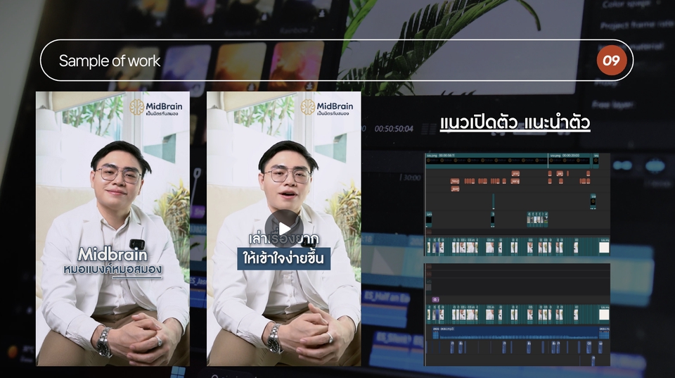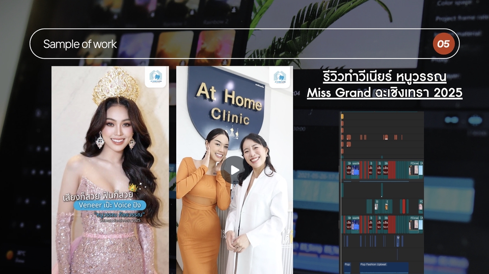 มีประสบการณ์หลากหลาย เช่น - แนวคลินิกเสริมความงาม - แนวคลินิกทันตกรรม - แนวสัมภาษณ์ - แนวไลฟ์สไตล์ - แนว Vlog สั้น - และแนวอื่นๆอีกหลากหลายตามบรีฟ ฯลฯ ตัวอย่างผลงาน : https://รับโดแมน.my.canva.site/chanida ขั้นตอนการทำงาน 1. พูดคุยตกลงความต้องการของคลิป 2. ส่งฟุตเทจผ่าน google drive 3. ชำระเงินผ่านระบบ Fastwork 4. เริ่มทำงานตามระยะเวลาที่กำหนดตกลง 5. ส่งดราฟแรกให้ตรวจสอบ และ แก้ไขจนแล้วเสร็จ 6. ส่งคลิปจริงผ่านไฟล์ google drive และ จบงาน