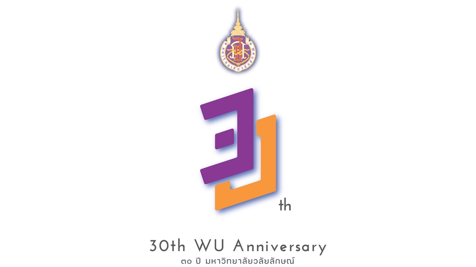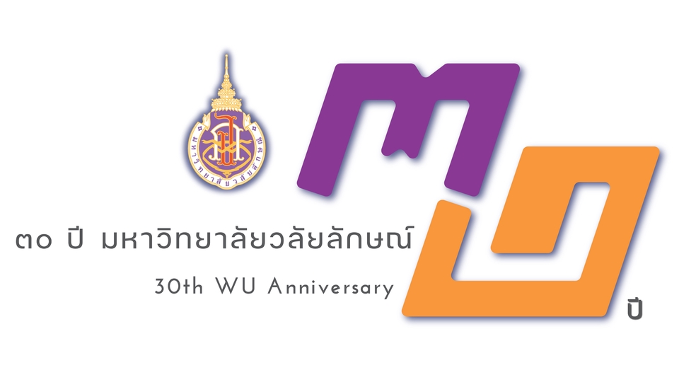 เป็นการส่งประกวดเนื่องในวันสถาปณาของมหาวิทยาลัยวลัยลักษณ์ปีที่ 30 หลักการออกแบบคือ การนำเลข 30 ที่ทางมหาวิทยาลัยได้ตั้งโจทย์มาพัฒนากับตัวอักษร WU ย่อมาจาก Walailak University ซึ่งคือ โลโก้ 1 ชิ้นงาน จะมีทั้งเลข 30และตัวอักษรWU ใน 1 ชิ้นงาน ใช้โปรแกรม Illustrator(Ai) ในการทำงาน โดย mood&tone จะอิงตามสีที่มหาวิทยาลัยวลัยลักษณ์ คือ สีแสด-ม่วง ขั้นตอนการทำงาน 1. ทำความเข้าใจจากโจทย์ที่ทางมหาวิยลัยตั้งมา 2. sketch ตัวอย่าง โดยนำสิ่งที่อยู่รอบๆมหาวิทยาลัยมาประยุกต์กับเลข30ปีของมหาวิทยาลัย เช่น สีที่ใช้กับมหาวิทยาลัย,รอบพื้นที่ของมหาวิทยาลัยหรือสภาพแวดล้อมเพื่อนำมาปรับใช้กับโลโก้ต่อไป 3. นำภาพที่ sketch ได้ไปใช้ใน program Illustrator เพื่อทำการออกแบบ 4. ปรับตกแต่ง และแก้ไขส่วนที่เกินและเพิ่มเติมส่วนที่ขาดหายไป 5. ตรวจสอบเพื่อความถูกต้อง และแก้ไขอีกครั้งสำหรับส่วนที่ขาดหาย และส่วนที่เกิน 6. ตรวจสอบอีกครั้งเพื่อความถูกต้องและสมบูรณ์