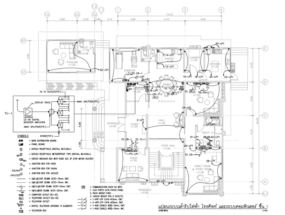 งานเขียนแบบระบบไฟฟ้า และออกแบบระบบไฟฟ้า อาคารบ้านพักอาศัย