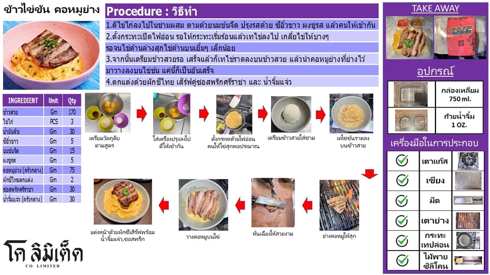 รับเป็น Consultant และจัดวางระบบภายในครัว การคิดค้นเมนูอาหาร การออกแบบเมนู การจัดทำสูตร การทำ SOP