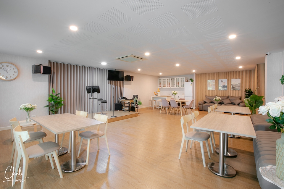 เชลิ โฮม สตูดิโอ - มีขนาดพื้นที่ใช้สอย 400 ตร.ม. - ขนาดพื้นที่สวน 450 ตร.ม. สิ่งอำนวยความสะดวก - มีจุดพักกอง 2 จุด (indoor-outdoor) - มีห้องน้ำ 6 ห้อง - มีห้องแต่งตัว - ไฟสตูดิโอต่อเนื่อง 2 ตัว - ระบบไฟ 3 เฟส 30(100) แอมป์ - จอดรถได้ 30 คัน *ใช้ไฟไม่มีค่าบริการเพิ่มเติม* หมายเหตุ: - น้องสัตว์เลี้ยง สามารถนำมาด้วยเข้าสตูดิโอได้ มีค่าใช้จ่าย 1,000 บาท ต่อตัว - หลัง 18.00 น. คิด OT ชั่วโมงละ 10% จากยอดรวม - หากจำนวนคนเกินกว่าที่กำหนดขั้นต่ำ คิดค่าบริการเพิ่ม 500 บาทต่อคน แต่ต้องไม่เกินจำนวน MAX - หากเกินเกินจำนวน MAX ต้องเช่าพื้นที่อย่างน้อย 1 โซน - สวนขนาด 480 ตร.ม. เป็นพื้นที่ส่วนกลาง ทุกโซนสามารถใช้งานบริเวณสวนได้ - งานถ่าย MV หรืองานประเภทอื่นๆ สามารถสอบถามรายละเอียดเพิ่มเติมได้ทุกช่องทาง