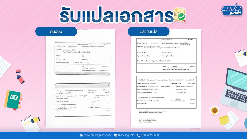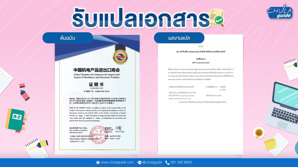รับเเปลเอกสารภาษาต่างประเทศ เช่น ไทย,จีน,อังกฤษ เเละอื่นๆ
