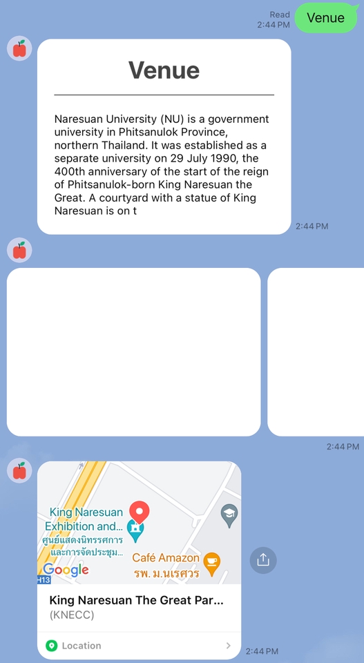 ฿1,590ได้รับแชทบอท: แชทบอทที่ออกแบบมาเพื่อตอบสนองความต้องการพื้นฐานของธุรกิจคุณ ฐานข้อมูล: Google Sheet , Mysql ตามความต้องการ เทมเพลตข้อความพร้อมใช้งาน: ช่วยให้คุณเริ่มต้นการสนทนากับลูกค้าได้อย่างรวดเร็วและมีประสิทธิภาพ การฝึกอบรมการใช้งานหลังบ้าน: ให้ความรู้และเทคนิคการใช้งานแชทบอทเบื้องหลัง เพื่อทำให้คุณสามารถสานต่อและจัดการงานได้ด้วยตัวเองอย่างมั่นใจ การสนับสนุนพิเศษผ่านช่องทางต่างๆ: รวมถึงอีเมล, โทรศัพท์, และการประชุมออนไลน์ เพื่อให้คุณได้รับการช่วยเหลือทันทีเมื่อต้องการ