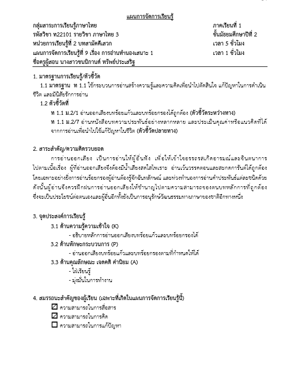 แผนภาษาไทยเทอม 1 และเทอม 2