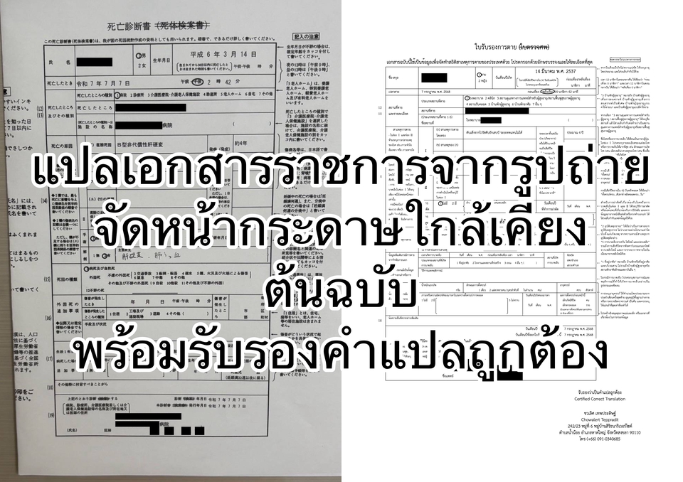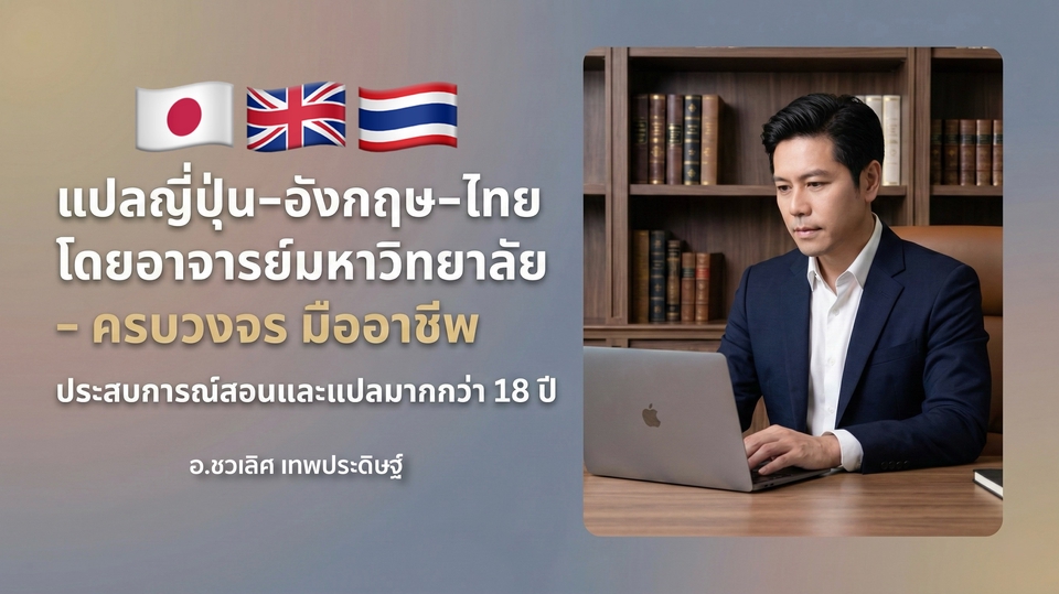 ให้บริการแปลภาษาญี่ปุ่น–อังกฤษ–ไทย ทุกประเภท โดยผู้มีประสบการณ์สอนและแปลมากกว่า 18 ปี เข้าใจทั้งภาษา วัฒนธรรม และบริบทของการใช้งานอย่างลึกซึ้ง 🔹 จุดเด่นของบริการนี้ - แปลโดยอาจารย์มหาวิทยาลัย เชี่ยวชาญงานแปลทั้งเชิงวิชาการและเชิงพาณิชย์ - ปรับสำนวนให้เป็นธรรมชาติ อ่านลื่นไหล เหมาะกับกลุ่มเป้าหมาย - มีความรู้ด้านวัฒนธรรมญี่ปุ่นลึกซึ้ง ช่วยลดความผิดพลาดในการสื่อความ - ส่งงานตรงเวลา พร้อมให้แก้ไขตามความเหมาะสม - รับงานด่วน (กรุณาแจ้งล่วงหน้า) 📁 ประเภทงานที่รับแปล - เอกสารราชการ: สูติบัตร ทะเบียนบ้าน ใบรับรองต่าง ๆ - งานวิชาการ: บทความ งานวิจัย เอกสารนำเสนอ - งานธุรกิจ: เมนูอาหาร โบรชัวร์ เว็บไซต์ โพสต์โซเชียลมีเดีย - มังงะ นิยาย ซับไตเติล รายการโทรทัศน์ - เอกสารทั่วไป อีเมล จดหมายส่วนตัว 📌 รองรับไฟล์ Word, Excel, PowerPoint, PDF, ภาพถ่าย ฯลฯ 📎 สามารถจัดรูปแบบให้ใกล้เคียงต้นฉบับได้ หากลูกค้าต้องการ 📃 ผลงานแปลล่าสุด - แปลเอกสารส่งเสริมเศรษฐกิจสร้างสรรค์ "โนรา" สำหรับพื้นที่วัฒนธรรมลุ่มทะเลสาบสงขลา - แปลเอกสารโครงการวิจัยและนวัตกรรมเพื่อแก้ไขปัญหาความยากจนในจังหวัดพัทลุง - แปลแผ่นพับและซับไตเติลวิดีโอการนำเสนอ "ศรีนาคาโมเดล" และสื่อประชาสัมพันธ์หัตถกรรมท้องถิ่น - ล่ามให้กับศิลปินมังงะญี่ปุ่นระหว่างการทำวิจัยภาคสนามในชุมชนหัตถกรรมกระจูดลุ่มแม่น้ำทะเลน้อย (โครงการของกรมการค้าภายใน กระทรวงพาณิชย์) 🛠 ขั้นตอนการทำงาน 1. รับบรีฟและประเมินงาน 2. ตกลงขอบเขต ระยะเวลา และค่าบริการ 3. ดำเนินการแปลด้วยความใส่ใจในรายละเอียด 4. ตรวจทานความถูกต้องและความเหมาะสมทางวัฒนธรรม 5. ส่งมอบงานตามกำหนด พร้อมรับข้อเสนอแนะเพื่อการปรับแก้