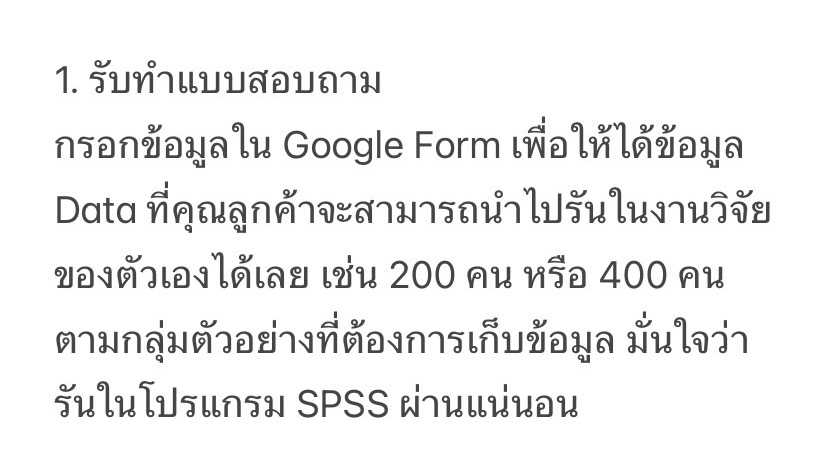 ฿800รับทำข้อมูล Data สำหรับรันงานวิจัย IS,Thesis กรอกข้อมูล Google Form เพื่อให้ได้Data ที่คุณลูกค้านำไปรันงานวิจัยของตัวเองได้เลย เช่น 200 - 400 คน ตามกลุ่มตัวอย่าง มั่นใจว่ารันในโปรแกรม SPSS ผ่านแน่นอน