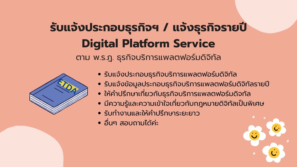 รับแจ้งประกอบธุรกิจ/แจ้งธุรกิจรายปี Digital Platform Service