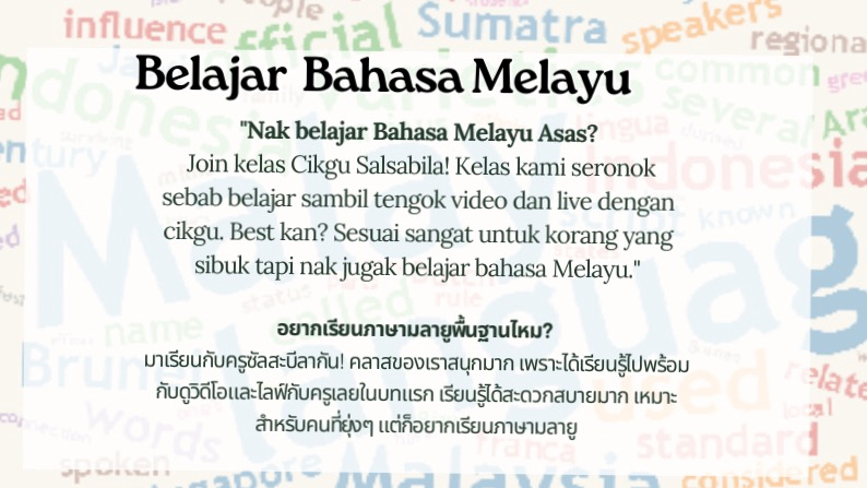 เรียนภาษามลายูกลาง ภาษามาเลย์ รูปแบบวีดีโอและเรียนสด