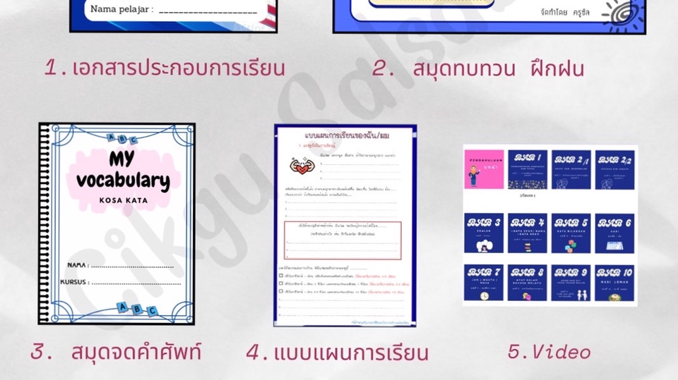 💻รูปแบบการเรียน เป็นการเรียนออนไลน์+เรียนผ่านวีดีโอ ❇️ เหมาะกับใคร? 👉 ผู้ที่ต้องการเรียนพื้นฐานภาษามลายูกลาง แต่ไม่มีเวลา หรือเวลาน้อย ผู้เรียนสามารถเรียนได้ด้วยตนเอง ทุกที่ ทุกเวลา สามารถสอบถามครูได้อย่างใกล้ชิด 🔙🔜 สามารถกลับมาเรียนหรือดูคลิปย้อนหลัง ได้อย่างไม่จำกัด รายละเอียด * บทเรียนทั้งหมด 10 บท พร้อมแบบฝึกหัด * มีแบบแผนการเรียนให้นักเรียน * เรียนได้ไม่จำกัดครั้ง ลืมแล้วกลับมาทบทวนดูวีดีโอใหม่ได้ * จัดส่ง เอกสารประกอบการเรียนรู้ฟรีถึงบ้าน ได้แก่ 1. เอกสารประกอบการเรียนรู้ 2. สมุดสำหรับใช้ทบทวนและฝึกฝนภาษา 3. สมุดจดคำศัพท์ 4. แบบแผนการเรียน 5. QR สำหรับสแกนดูวีดีโอ 🕑 ไม่จำกัดเวลา ชั่วโมงเรียน เรียนได้ตลอดทุกที่ ทุกเวลาที่ต้องการ พร้อมมีโค้ชในการสอบถาม/ปรึกษา 🙌 สามารถสอบถามเพิ่มได้นะคะ 👉 ขั้นตอนการทำงาน👈 1. สอบถามเพิ่มเติม ทักทายครูก่อนได้นะคะ 2.ระบบออกใบเสนอราคา ให้นร.ชำระค่าเรียน 3.หลังจากชำระแล้ว ครูส่งสื่อการสอนให้ 4.นร.รอรับที่บ้าน พร้อมทำตามกระบวนการได้เลยค่ะ