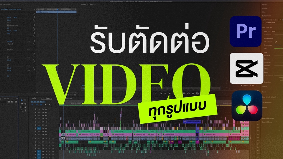 ฿5,000งานด่วนคุณภาพดี Cutting กระชับเข้าใจง่าย Graphic ภายใน Video ใส่ Music Score, Sound Effect, text Super * ฟรี Color Grading * ฟรี TH-Sub *เพิ่ม Eng-Sub 500 บาท ส่งงาน Final Google Drive