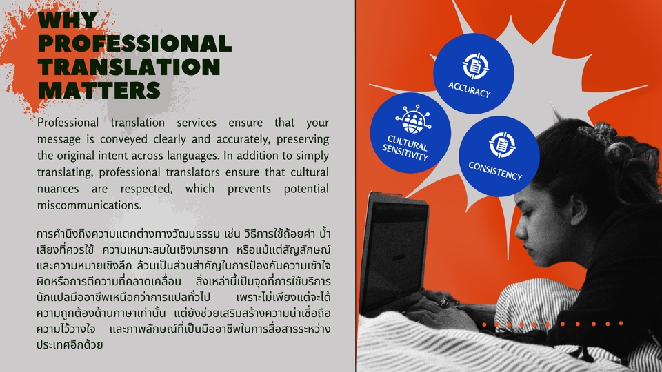 - • เอกสารนำเสนอ/สไลด์พร้อมแปลข้อความ
