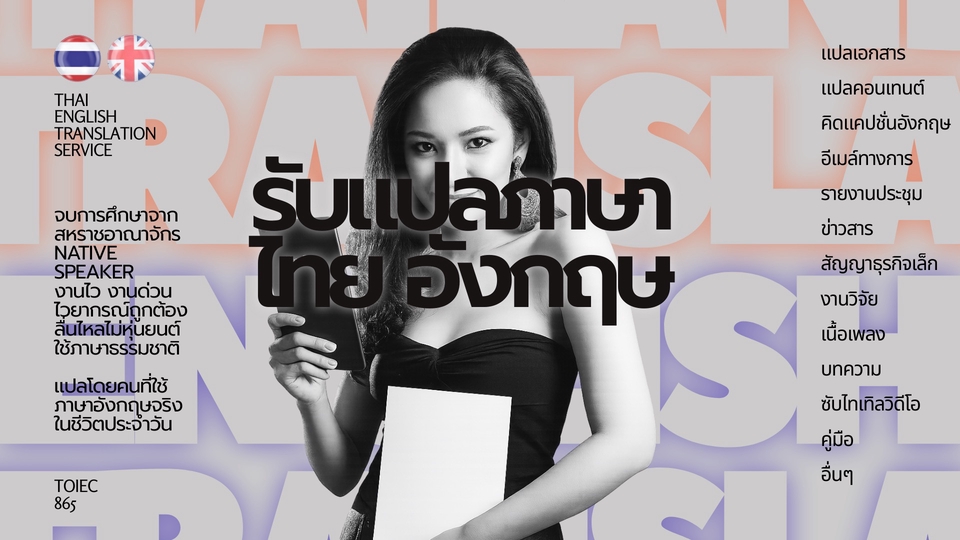 รับแปลภาษา | ไทย-อังกฤษ | ด่วน | ทุกชนิด | TOIEC 865