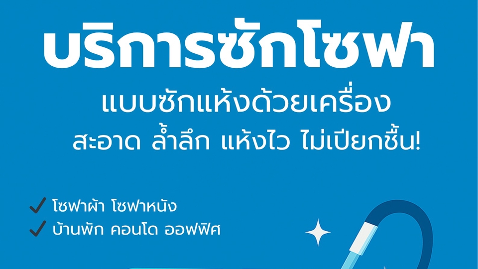 🧼 บริการซักโซฟา แบบซักแห้งด้วยเครื่อง ✨ สะอาดล้ำลึก แห้งไว ไม่เปียก ไม่อับชื้น! 🛋️ ซักโซฟา / เก้าอี้ผ้า / เบาะผ้า / ที่นอน ✅ ขจัดฝุ่นไร เชื้อโรค และกลิ่นอับ ✅ ใช้เครื่องดูดซักแรงสูง ปลอดภัยต่อผิวสัมผัส ✅ ทำความสะอาดถึงใยผ้า แห้งไว ไม่ทิ้งคราบ 📍 บริการถึงบ้าน 💸 ราคาเริ่มต้นเพียง 100 บาท!