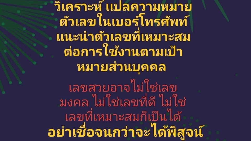 - • เข้าความหมายตัวเลขในเบอร์ที่ใช้อยู่อย่างละเอียด