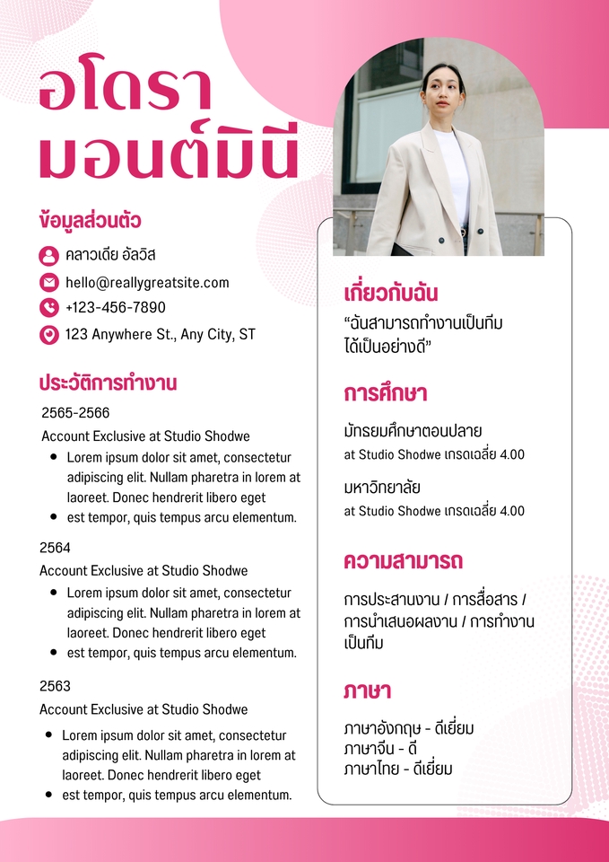 รับทำ Resume , CV เขียนกระชับละเอียด เพิ่มโอกาสได้งาน ไม่โดนปิดProfileทิ้งใน 3 วิแรก