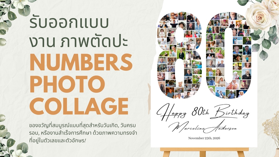 ของขวัญที่สมบูรณ์แบบที่สุดสำหรับวันเกิด, วันครบรอบ, หรืองานสำเร็จการศึกษา ด้วยภาพความทรงจำที่อยู่ในตัวเลขและตัวอักษร! บริการนี้คือการสร้างสรรค์ Photo Collage ที่ใช้รูปทรงตัวเลข (เช่น 1, 18, 70) หรือตัวอักษร (เช่น A, M, LOVE) เพื่อบรรจุภาพความทรงจำของบุคคลสำคัญ เหมาะสำหรับทุกวาระ: เป็นของขวัญที่ขาดไม่ได้สำหรับ วันเกิด, วันครบรอบ, หรือของที่ระลึกงานสำเร็จการศึกษา (เช่น รูปทรงหมวกบัณฑิต หรือปีการศึกษา) การปรับแต่งสูงสุด (Highly Personalized): ลูกค้าสามารถเลือกตัวเลขหรือตัวอักษรใดก็ได้ตามต้องการ พร้อมใส่ชื่อ, วันที่, และคำอวยพรที่บ่งบอกความเป็นตัวคุณ สไตล์ Minimalist: งานออกแบบเน้นความเรียบง่ายแต่ทรงพลัง ทำให้รูปภาพโดดเด่นและสวยงาม เหมาะสำหรับนำไปใส่กรอบรูปประดับบ้าน พร้อมพิมพ์ทันที: ส่งมอบไฟล์ ความละเอียดสูง 300 DPI ที่พร้อมนำไปพิมพ์ใส่กรอบรูป หรือพิมพ์บน Canvas ได้ทันที #งานของเราเหมาะกับโอกาสสำคัญ ✅ วันเกิด: ตัวเลขบ่งบอกอายุ (เช่น 25th Birthday, 70th Birthday) ✅ วันครบรอบ: ตัวเลขบ่งบอกปีที่คบกัน/แต่งงาน ✅ ของขวัญสำเร็จการศึกษา: ตัวเลขปี (เช่น 2026), รูปทรงหมวกบัณฑิต หรือรูปทรงตัวอักษร ✅ ของขวัญสื่อความหมาย: ตัวอักษรชื่อย่อ หรือคำสั้น ๆ (เช่น LOVE, HOME) #ข้อมูลที่ลูกค้าต้องเตรียม (Ready to Start?) แจ้งแพ็กเกจ/รูปทรงที่ต้องการ: เช่น "ตัวเลข 50" หรือ "ตัวอักษร M" พร้อมขนาด รูปถ่าย: จำนวนรูปภาพตามที่เลือก ข้อความหลัก: ตัวเลข/ตัวอักษรที่ต้องการ, ชื่อ, วันที่สำคัญ, คำอวยพร โทนสี/ฟอนต์: สไตล์ที่ต้องการ #หมายเหตุ การแก้ไข: แก้ไขงานได้ตามจำนวนครั้งที่ระบุในแพ็กเกจ งานเร่งด่วน: กรุณาแจ้งและสอบถามราคาส่วนเพิ่มก่อนสั่งซื้อ หากต้องการงานด่วน