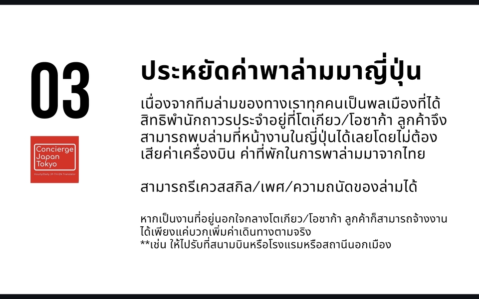 - • บริการล่ามมูลค่าเทียบเท่า3,000฿