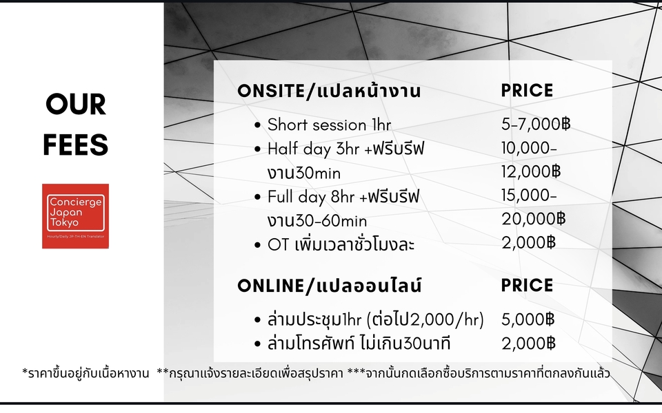 ฿5,000บริการล่ามมูลค่าเทียบเท่า5,000฿