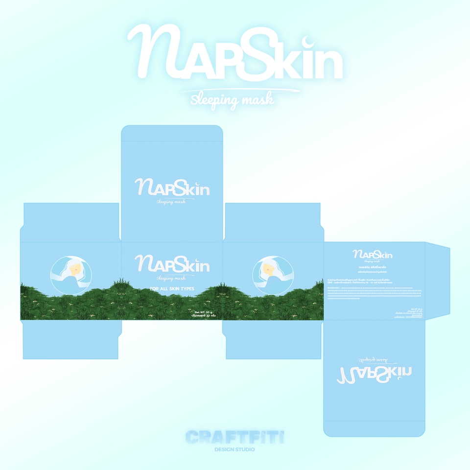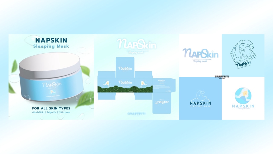 ออกแบบกล่อง Packaging โมเดลสินค้า พร้อม Logo แบนด์สินค้า เป็นโลโก้ที่ให้ความรู้สึกหลับสบาย สดชื่น ใบหน้าชุ่มชื้น ดึงดูดการตลาด ในการเลือกซื้อสินค้า มีสีฟ้าโทนเย็นให้รู้สึกถึงความสบายตา ขั้นตอนการทำงาน 1. รับบรีฟจากลูกค้า ประชุมงานและแบ่งงานกับทีมงาน 2. เลือกโทนสี และแจกแจงงานกับทีมงาน