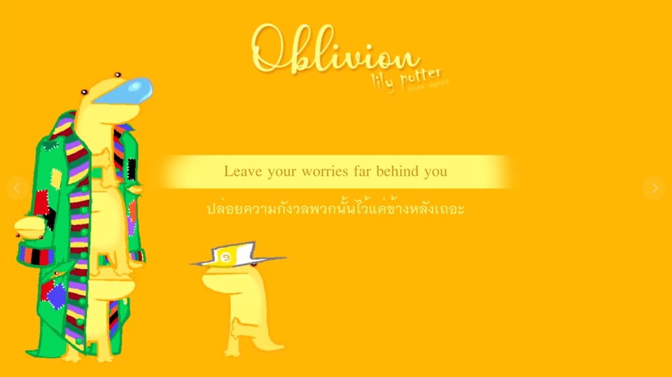 เป็นงานการทำซับที่ได้แรงบันดาลใจมาจากเพื่อน เป็นเพลงโปรดของเพื่อน ในเพลงมีการแปลภาษาเองและทำ Video เอง มีการใส่ทั้งเนื้อเพลงต้นฉบับและเนื้อเพลงที่แปลเป็นภาษาไทยแล้ว ขั้นตอนการทำงาน 1. หาเนื้อเพลงต้นฉบับ 2. แปลเพลงเป็นภาษาไทยและเกลาให้สมูทมากขึ้่น 3. ทำภาพเพื่อทำไปใช้ในคลิป 4. ทำคลิปเวอร์ชันใส่ซับลงไปด้วยทั้งต้นฉบับและภาษาไทย