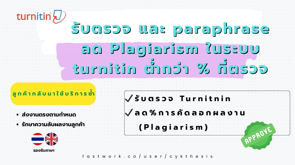 รับตรวจ turnitin / paraphrase ลด Plagiarism ต่ำกว่า % ที่ตรวจ
