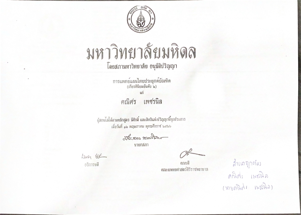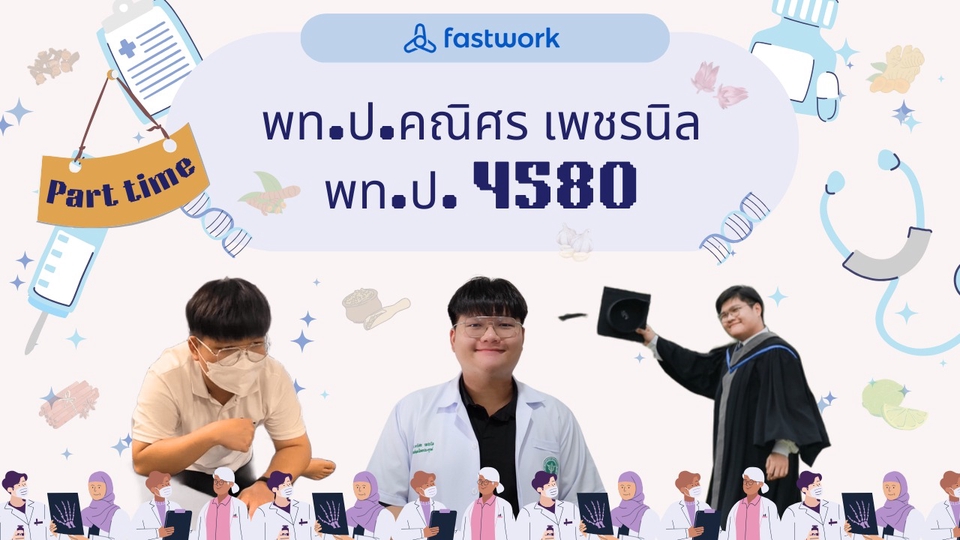 รับเวร Part-time แพทย์แผนไทยประยุกต์ ตามคลินิกและโรงพยาบาล ในกรุงเทพฯ รายละเอียด 😄 ✅ รับเฉพาะเวร Part-time / โครงการ เท่านั่น ✅ คลินิกและโรงพยาบาลอยู่ในพื้นที่จังหวัดกรุงเทพฯ เท่านั้น เนื่องจากพักอาศัยในกรุงเทพฯ [กรณีต่างจังหวัดผู้จ้างต้องออกค่าเดินทาง ค่าที่พัก และค่าอาหารให้ Freelance และทำสัญญาล่วงหน้าอย่างน้อย 15-20 วันขึ้นไป] ✅ สามารถรับเวรได้ทุกวัน จันทร์ - อาทิตย์ ✅ เวลาการทำงานสามารถติดต่อกันในแชทส่วนตัวใน Fastwork ได้เลยครับ ✅ สามารถรับเวรทั้งคลินิก / โรงพยาบาลที่เน้นเวชกรรม (ตรวจ - จ่ายยา) หรือ หัตถเวชกรรม (นวด - ประคบรักษา) ได้ทั้ง 2 แบบ ✅ สามารถรับเป็นที่แพทย์ปรึกษาโครงการได้ ✅ สามารถรับเป็นผู้บรรยาย ให้ความรู้เรื่องศาสตร์แพทย์ทางเลือกและการรักษาแบบผสมผสานได้ แนะนำตัว 🥰 ชื่อ : นายคณิศร เพชรนิล ชื่อเล่น : ไอซ์ อายุ : 24 ปี เพศ : ชาย จบจากสาขาการแพทย์แผนไทยประยุกต์ คณะแพทยศาสตร์ศิริราชพยาบาล มหาวิทยาลัยมหิดล เกียรตินิยมอันดับ 2 เลขที่ใบประกอบวิชาชีพ : พท.ป.4580 ประสบการณ์การทำงาน 🌿 - OMD Clinic ตำแหน่งแพทย์แผนไทยประยุกต์ [2566] - HIKARI Clinic ตำแหน่งแพทย์แผนไทยประยุกต์ [2567-2568] - ศูนย์การแพทย์แผนไทยและการแพทย์ทางเลือก สาขามีนบุรี ตำแหน่งแพทย์แผนไทย [2567-2568] - D.ATTM.KP (Integrative Health Consultant) ตำแหน่งแพทย์แผนไทยประยุกต์ (Freelance) และอยู่ในระหว่างอบรม/ประชุมเพิ่มพูนทักษะ [ปัจจุบัน] - Poonrada Yathai ตำแหน่งแพทย์แผนไทยประยุกต์ (Freelance) [ปัจจุบัน] ความสามารถในการรักษา 🧑⚕️ 1. ตรวจรักษา ให้คำแนะนำ จ่ายยาสมุนไพร โรคทั่วไป 2. ตรวจรักษา ให้คำแนะนำ จ่ายยากัญชาทางการแพทย์แผนไทย 3. การดูแลรักษาและให้คำแนะนำผู้ป่วยระยะฟื้นฟู IMC โรคหลอดเลือดสมอง 4. การดูแลรักษาและให้คำแนะนำโภชนาการผู้ป่วยโรคมะเร็ง และโรคเรื้อรัง 5. การดูแลรักษาและให้คำแนะนำผู้ป่วย Palliative care 6. นวดรักษา ประคบสมุนไพร แบบราชสำนัก ผสมผสานเชลยศักดิ์ 7. การยืดกล้ามเนื้อนักกีฬาประเภท Passive stretching 8. นวดปรับสมดุลโครงสร้าง ร่างกาย 9. นวด Sport massage 10. เผายา 11. พอกยา สไตล์การรักษา 🧡 ✅ การซักประวัติ ตรวจร่างกาย ตาม Guideline ของแพทย์แผนปัจจุบันเป็นหลัก ✅ การนวดรักษา รักษาตามมัดกล้ามเนื้อและโครงสร้างของ Anatomy ✅ การจ่ายยา จะอ้างอิงจากยาแผนปัจจุบันที่ผู้ป่วยรับประทานเป็นหลักก่อนแล้วจะดู Drug interaction และโรคประจำตัวของผู้ป่วยเป็นหลักในการจ่ายยาเพื่อความเหมาะสมที่สุด ✅ การให้คำแนะนำ จะเน้นให้คำแนะนำคล้ายๆแผนปัจจุบันทั่ว ๆไปเนื่องจากฟังง่าย เข้าใจง่าย แผนไทยเรื่องการปรับธาตุอาจมีบ้างเล็กน้อย การอบรมและการประชุมเพิ่มเติมระหว่างการทำงาน 📑 1. ประกาศนียบัตรอบรมหลักสูตรพื้นฐานการใช้กัญชาทางการแ