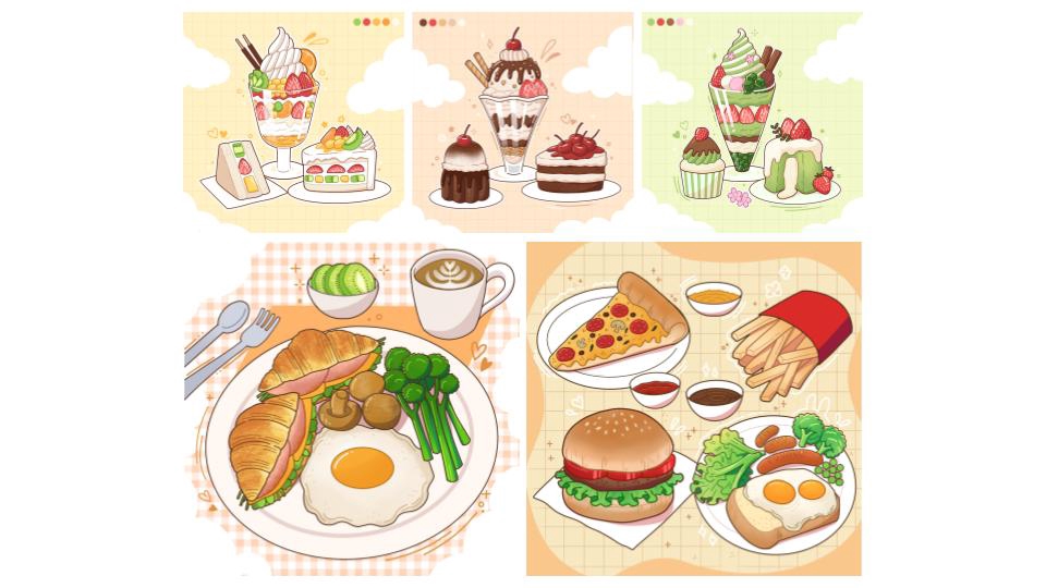 วาดภาพอาหาร เครื่องดื่ม ขนมหวาน สใตล์น่ารัก