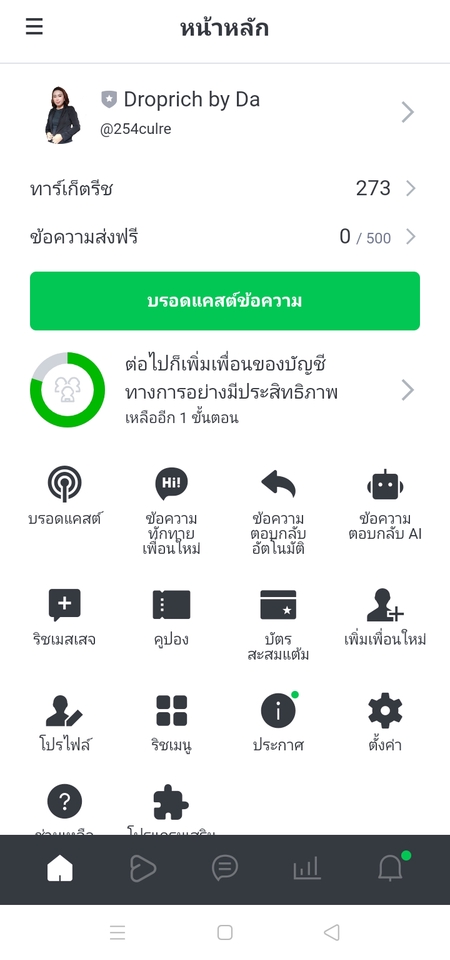 ฿5001ตั้งค่าโปรไฟล์ 2ใส่รายหน้าโปรไฟล 3ข้อความทักทายลูกค้า 4.ริชเมนู