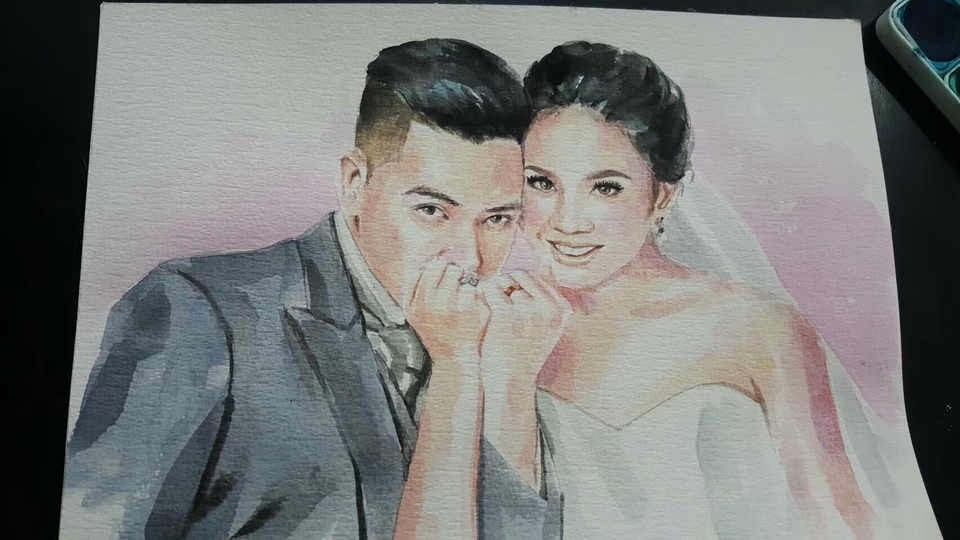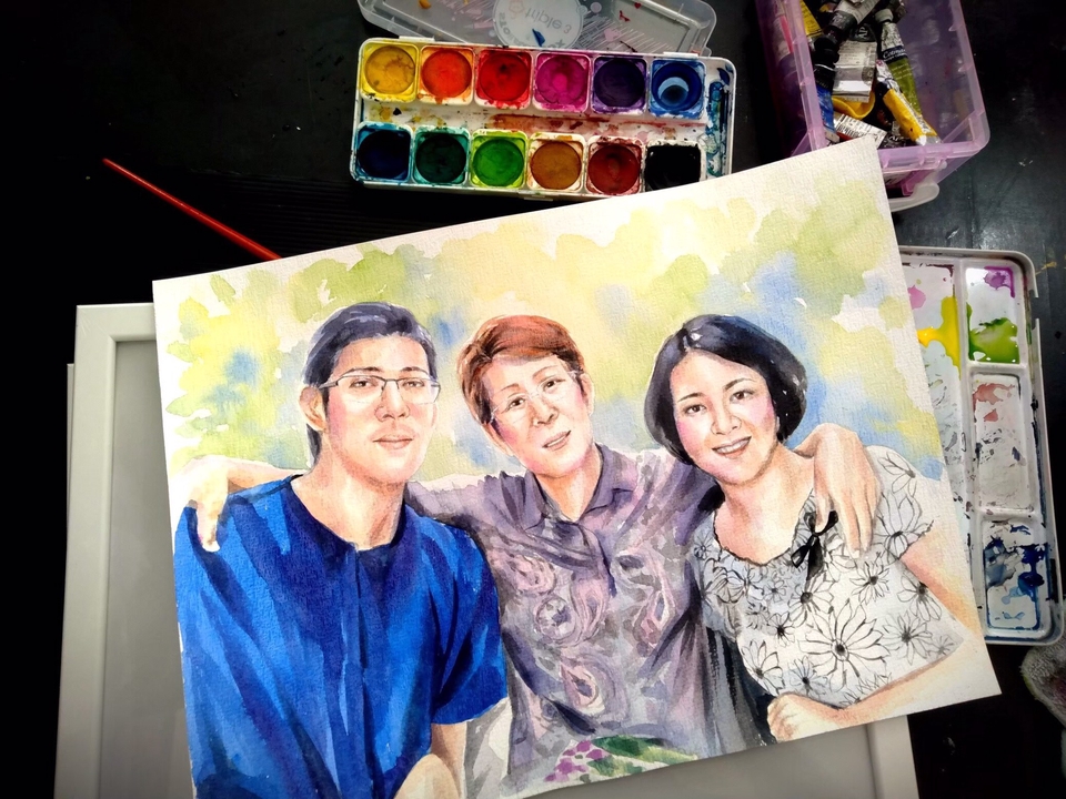 ภาพวาดสีน้ำ Portrait บนกระดาษสีน้ำSeikai/Arches ความหนา 300 แกรม พร้อมทั้ง Scan ภาพ ใช้สีน้ำยี่ห้อ Sennelier (เซเน่ลิเย่) สอบถามรายละเอียดก่อนได้ยินดีให้คำปรึกษาครับ ขั้นตอนการทำงาน 1. สอบถามข้อมูลที่ลูกค้าต้องการและรายละเอียดต่างๆ 2. sketch ลายเส้นดินสอ 3. แก้ไขแบบ sketch ดินสอ 1 ครั้ง พร้อมทั้งสรุปแบบ 4. ลงสีน้ำตามแบบ sketch และรายละเอียดต่างๆ ตามที่ได้สรุปงานไว้ 5. จัดส่งชิ้นงานให้ลูกค้า
