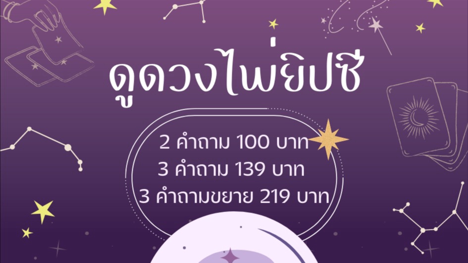 ดวงต้องดี คุณยายดูดวง [พิมตอบ] 2 คำถาม 100บาท,3 คำถาม 139บาท, 3 คำถาม+ไพ่ขยาย219บ. -ข้อดี เก็บคำทำนายไว้อ่านได้ ไม่ต้องเร่งคิดคำถามตามเวลา -คำถามต้องไม่กว้าง เฉพาะเจาะจง เช่นความรักกับ...จะเป็นอย่างไร,การงานที่..1กับ2ที่ไหนดีกว่ากัน , ระยะเวลาทำนายได้ไม่เกิน1-2ปี นะคะ 🎉ส่วนหนึ่งของเงินที่ได้นำไปทำบุญ ที่เหลือเป็นค่าขนมบ้านยาย 🌼ใครลำบากงบน้อยทักคุยก่อนได้นะคะ ขั้นตอนการทำงาน 1. ตกลงจำนวนงาน คำถาม 2. สร้างใบเสนอราคา 3. ชำระเงินค่าดูดวง 4. เลือกช่องทางในการพิมตอบคำถาม 5. ถาม-ตอบ สิ่งที่ลูกค้าสงสัย 6. ตอบรับงาน เสร็จสิ้น