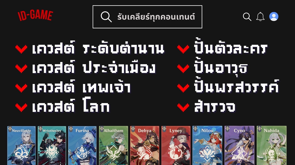 📣สวัสดี..นักเดินทางที่ผ่านเข้ามา ทางเรายินดีที่จะรับดูแล ID ของท่าน ตามที่ต้องการ.♥︎ 👀 ทำความรู้จัก : GI• ▶ นักเดินทางที่เล่นตั้งแต่วันแรก ปัจจุบันเป็นผู้เล่น Content End Game | Ar 60/60 ▶ ความสำเร็จแมพ เควสต์เทพเจ้า เควสต์ชื่อเสียง คำขอประจำเมือง เกมการ์ด 100% Wuwa• ▶ Rover ปัจจุบัน ผู้เล่น Content End Game | Union Level 80 ▶ สำรวจ เควสต์ กิจกรรม | 100% ประสบการณ์ที่นักเดินทางจะได้รับ : - Clear Resins - Clear Quests - Clear Daily Quest - Clear World - Clear Spill Abyss - Clear Dungeons - ETC. *รับประกันคุณภาพชิ้นงานที่นักเดินทางได้รับ *ใช้ระบบ Hoyoverse ID-PASSWORD เพื่อความสะดวกทั้งสองฝ่าย *gmail login ได้ตามความถนัด เชิญนักเดินทางเลือกแพ็กเกจที่เหมาะสมต่อการใช้ชีวิตในโลก Teyvat เกมที่คุณรัก ของตัวนักเดินทางเอง ‼️อย่าลืม แจ้งระบุความต้องการ และรายละเอียดเพิ่มเติมให้ทางเราได้ทราบข้อตกลง ที่นักเดินทางอยากให้ทำ พูดคุยตกลงราคา วันกำหนดงาน และแจ้งให้ทราบว่านักเดินทางเข้าเล่นเวลาไหนบ้าง /Thank You 🙏🏼 ขั้นตอนการทำงาน 1. สอบถามรายละเอียดแจ้งรายละเอียดราคา 2. ตกลงนัดวัน แจ้งรายระเอียดข้อตกลงและระยะเวลาการทำงาน 3. แจ้ง ID ของนักเดินทาง 4. ดูแลไอดีตามวันเวลาที่นัด 5. แจ้งรายละเอียดดำเนินการไอดี 6. ตรวจสอบความถูกต้องของไอดี 7. เสร็จตามระยะเวลา พร้อมส่งงานเมื่อทำสำเร็จ