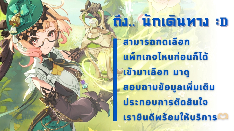 ฿800สิ่งที่จะได้รับ : 1️⃣กิลด์นักผจญภัย •Clear Daily Quests 4 เควส/วัน •ส่งสำรวจ-รับสำรวจวัตถุดิบ •Battle Pass •ค่าความสนิทตัวละคร 2️⃣ค่าประสบการณ์ตามเมือง (เลือกได้) •เคลียร์คำขอชาวเมือง 3 คำขอ/สัปดาห์ •เคลียร์ปราบปรามมอนเตอร์ 3 คำขอ/สัปดาห์ 3️⃣ดันเจี้ยน (เลือกได้) •เคลียร์ Resin 160 หน่วย/วัน (หรืออัดเม็ดด้วย) •เคลียร์บอสรายสัปดาห์ 3 บอส/สัปดาห์ 4️⃣อื่นๆ •เคลียร์กิจกรรมในแต่ละวัน •ลงดันอบีส •เก็บแร่ / ดอกไม้ / เก็บผีเสื้อ / ของดรอปมอนเตอร์ 😮ปั้นตัวละคร 🔥แจ้งความต้องการได้ทาง in box‼️