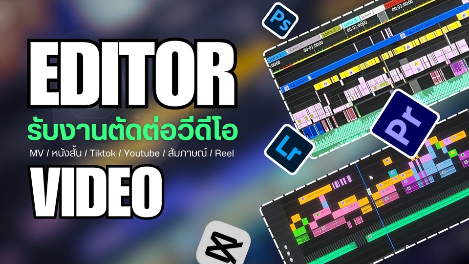 รับงานตัดต่อวีดีโอ Mv/Youtbe/Tiktok/Reel/หนังสั้น/Promote/รีวิวสินค้า งานด่วนรับตัดต่อครับ