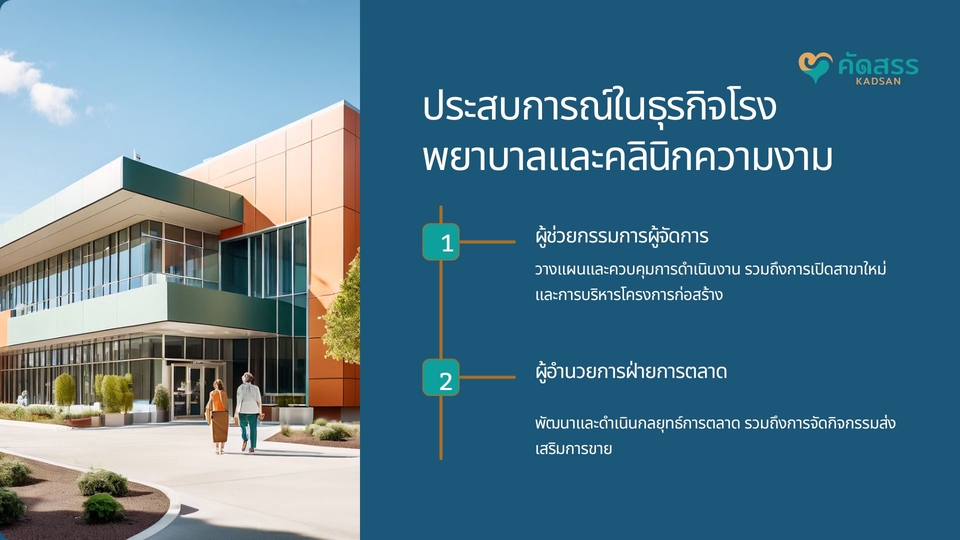 ที่ปรึกษาและวางกลยุทธ์ให้กับธุรกิจสายแพทย์ โดยเฉพาะ เช่น โรงพยาบาล/ คลินิก/ คลินิกเสริมความงาม