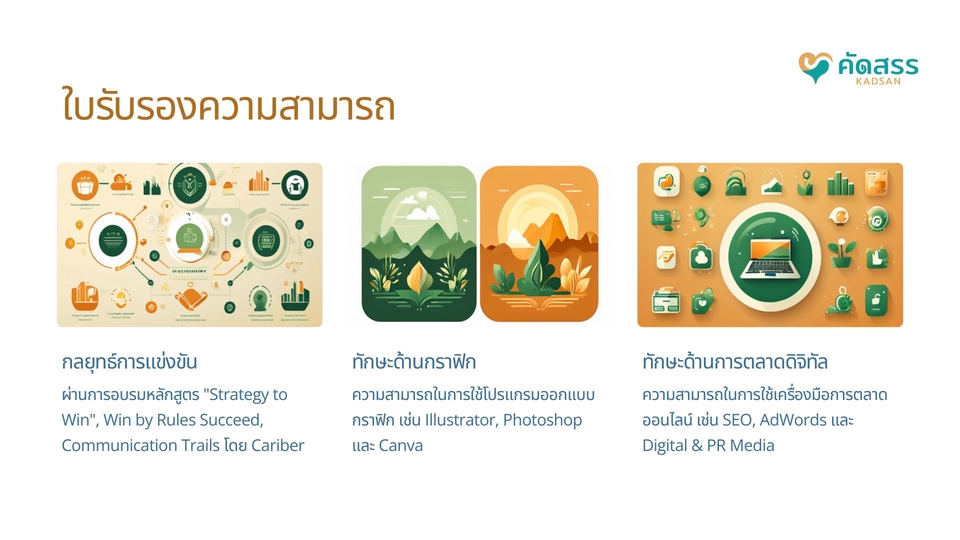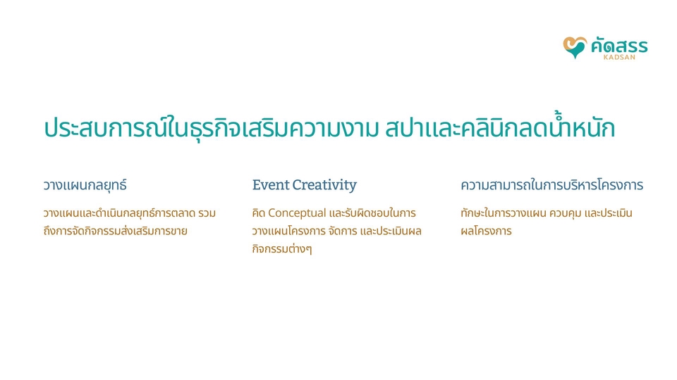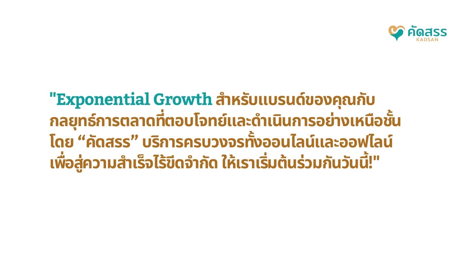 สวัสดีค่ะ ดิฉัน "เดลล่า" จากแบรนด์ คัดสรร| Kadsan, เราเชี่ยวชาญในการให้บริการด้าน Strategy, Digital, Event และ Management Solutions ด้วยความใส่ใจในทุกรายละเอียด ยินดีให้คำปรึกษาและช่วยเหลือธุรกิจของคุณให้เติบโตและประสบความสำเร็จค่ะ